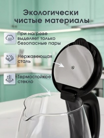 Чайник МАТРЁНА MA-006 черный.Мощность 1500Вт.Объём 1,8л.Корпус из термостойкого стекла (12)