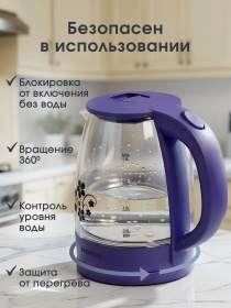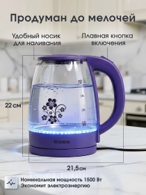 Чайник электрический ROXEN RX-7020 Purple 1,8л.Мощность 1500Вт.Корпус из термостойкого стекла (12)