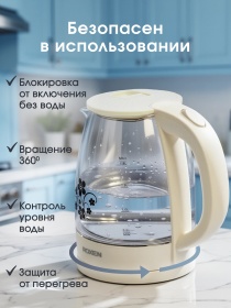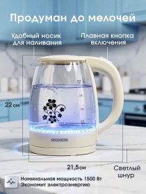 Чайник электрический ROXEN RX-7020 Ivory 1,8л.Мощность 1500Вт.Корпус из термостойкого стекла (12)