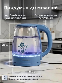 Чайник электрический ROXEN RX-7020 Breeze 1,8л.Мощность 1500Вт.Корпус из термостойкого стекла (12)