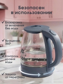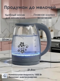 Чайник электрический ROXEN RX-7020 Grey 1,8л.Мощность 1500Вт.Корпус из термостойкого стекла (12)