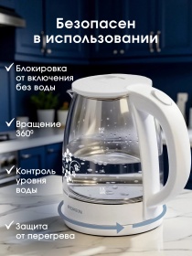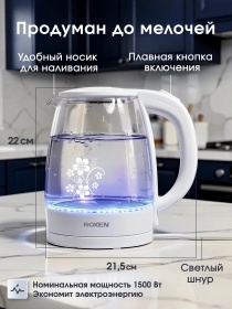 Чайник электрический ROXEN RX-7020 White 1,8л.Мощность 1500Вт.Корпус из термостойкого стекла (12)