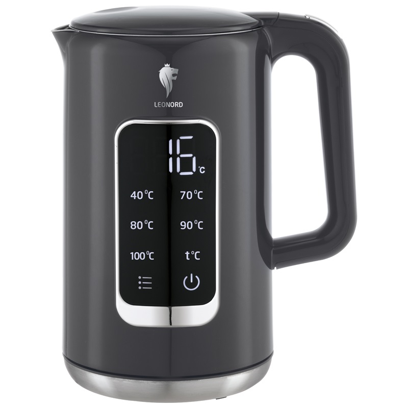 Чайник электрический Leonord LE-1533.Мощность 1850-2200Вт. Объем 1,7лДвойной корпус(нержавеющая сталь внутри,пластик снаружи).Большой LED дисплей.Сенсорное управление.Установка температуры 40?,70?,80?,90?,100?.Поддержание температуры 2 часа.Функция памяти.Поворот на подставке 360°.Защита от работы без воды.Автоматический выключатель.Контроллер OTTER (Англия). Гарантия 2 года.Длина шнура 78см.