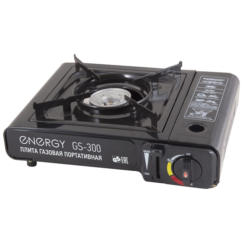 Плита газовая портативная ENERGY GS-300 (кейс)С пьезоподжигом.С регулятором пламени.Плитка походная. Работает от стандартного цангового баллона-картриджа со смесью бутана и пропана (или изобутаном).Цельнолитая горелка.Защита от утечки газа.Защита от неправильной установки баллона.Двойная изоляция клапана подачи газа.Защита от подачи газа повышенного давления.Размеры (в кейсе): 350*300*95 мм.Размеры вне кейса: 340*280*115 мм.Кейс в подарок!Мощность 8000BTU (2,5 кВт).Температура до +700°C.Расход газа: до 155 г/час.