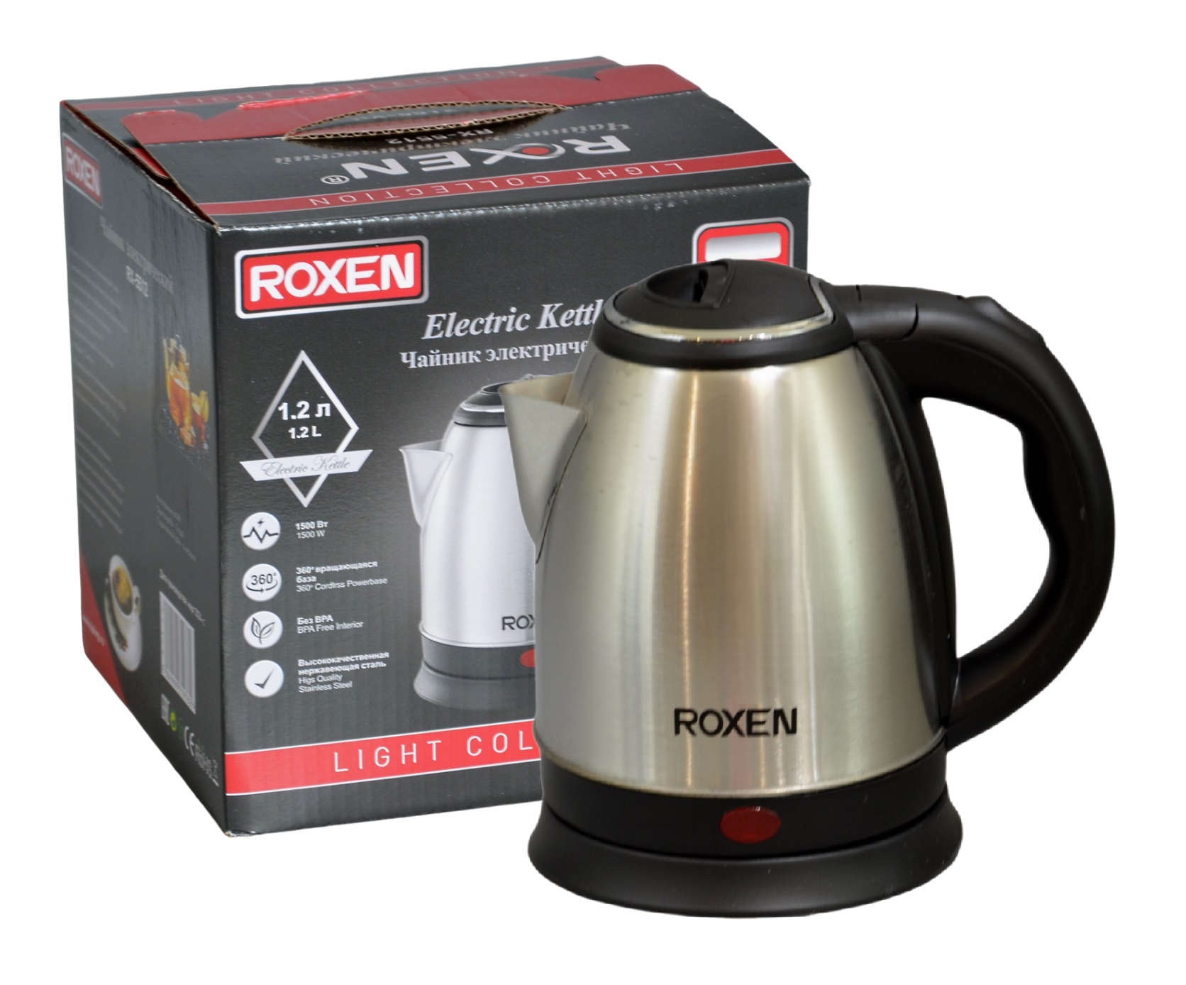 Мощность 1500Вт.Объем 1,2л.Корпус нержавеющая сталь.Автоотключение при закипании.Возможность поворота на подставке на 360*.Закрытый нагревательный элемент из нержавеющей стали.Световой индикатор работы (12)