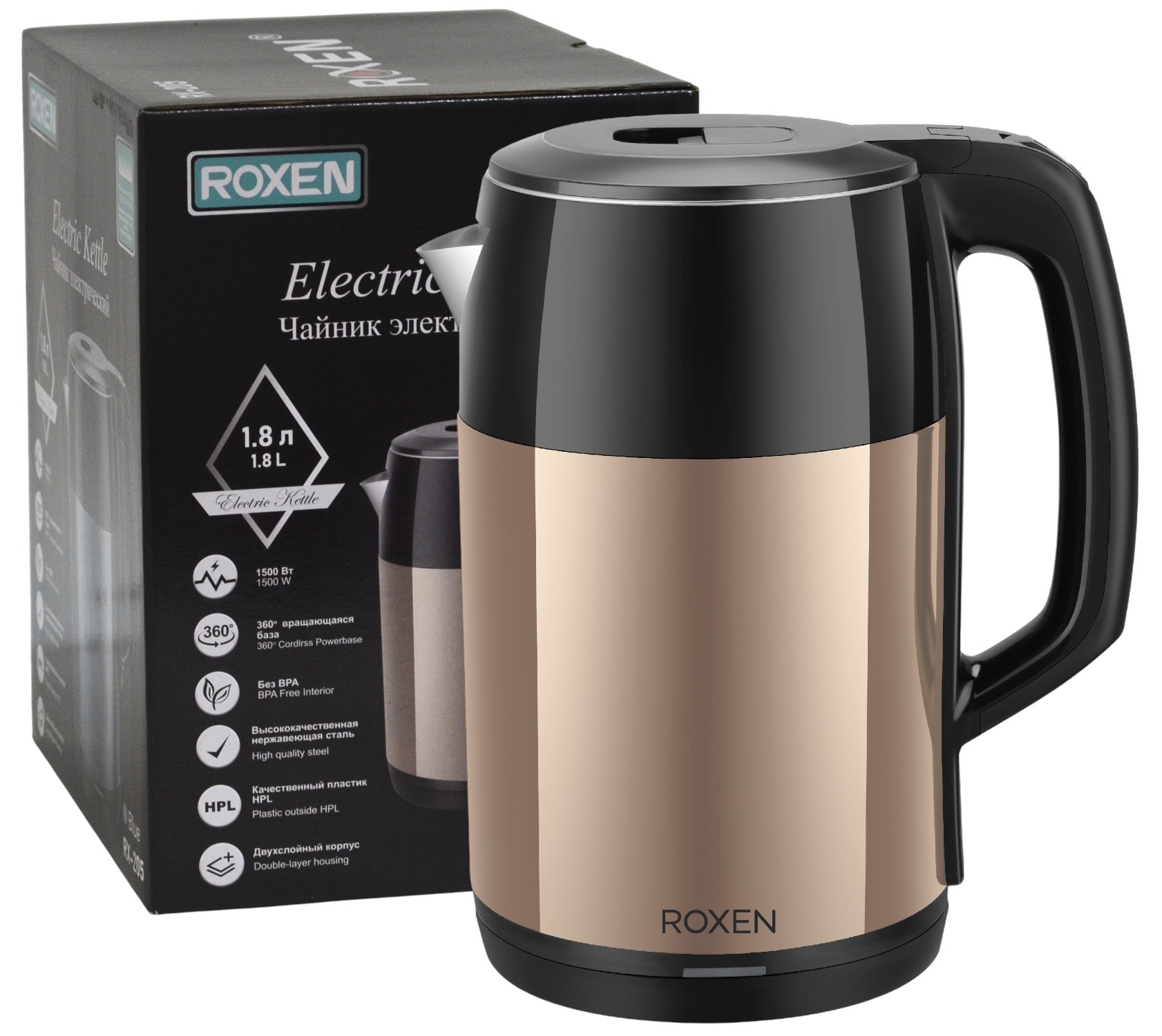Мощность 1500Вт.Объем 1,8л.Двойной корпус пластик/сталь.Автоматическое отключение при закипании.Возможность поворота на 360 градусов (12)