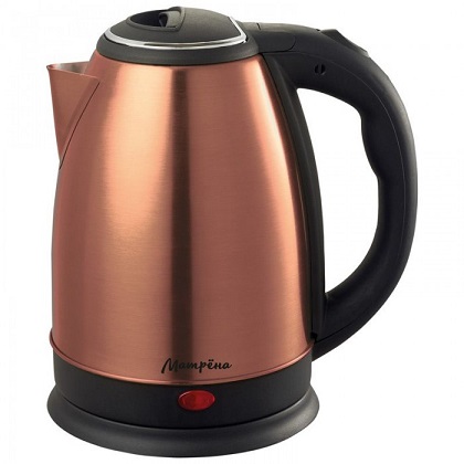 Чайник МАТРЁНА MA-002 электрический,стальной медный,мощность 1500Вт.Объем 1,8 л.Корпус из нержавеющей стали.Закрытый нагревательный элемент из нержавеющей стали.Поворот на подставке 360°.Защита от работы без воды.Автоматический выключатель.Световой индикатор работы.Место для хранения шнура.