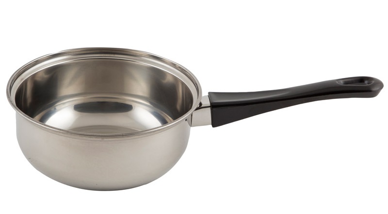 Ковш из нерж стали с бак ручкой, зерк полир 0,75л Buono.Толщина 0,35мм.Диаметр 14см,высота 7см (24)