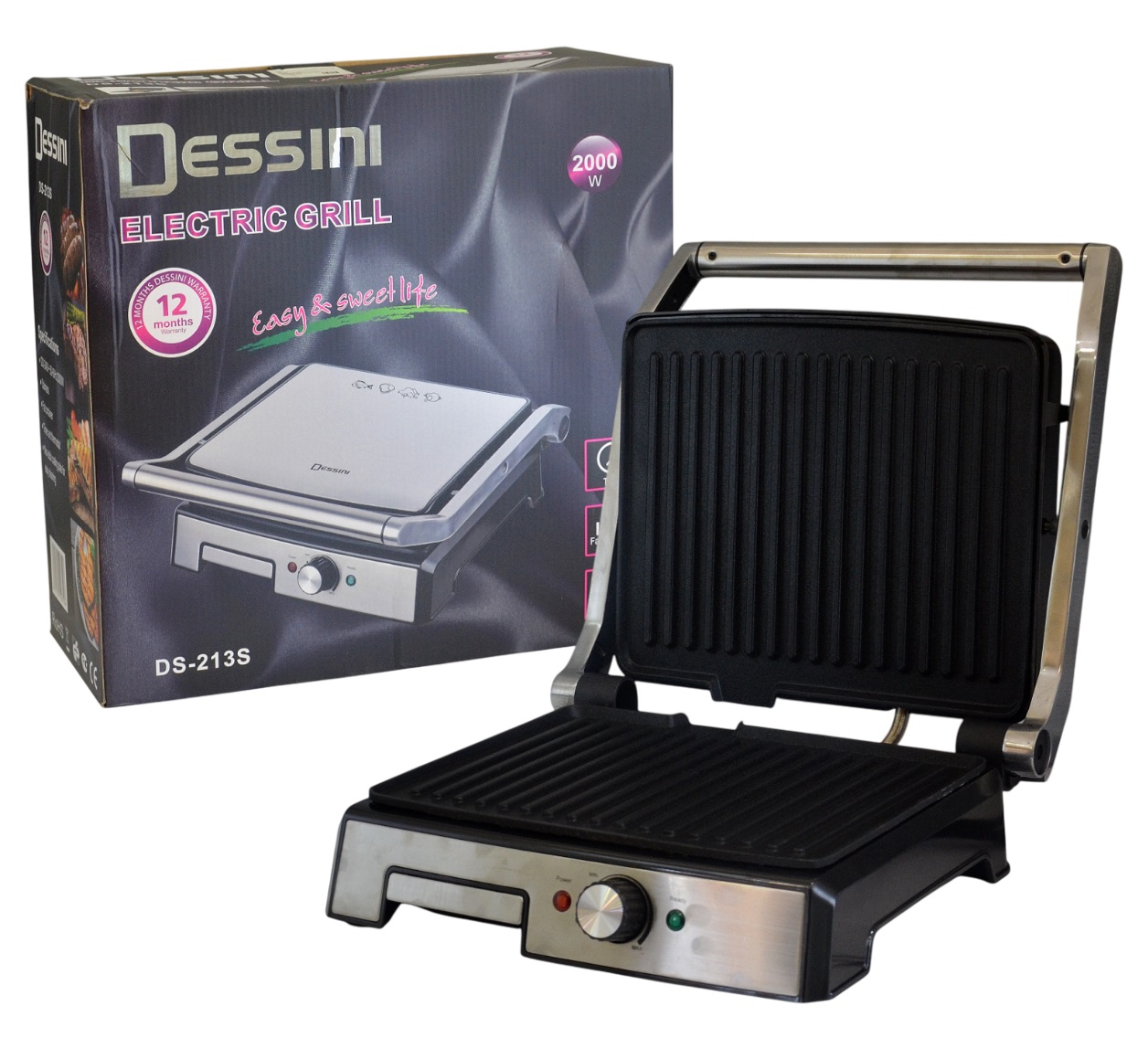 Мощность 2000Вт.Регулятор температуры.Лоток для сборки жира.Раскрытие на 180*.Антипригарное покрытие пластин 29*24см (4)